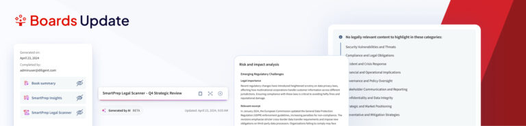 AI-powered tools designed for how boards actually work Diligent Boards has always been the go-to place for secure, effective board collaboration, Now, with the introduction of GovernAI, we’re helping governance leaders work smarter with less manual effort. GovernAI is purpose-built for governance workflows. From prepping board books to drafting minutes to flagging risky language, these…